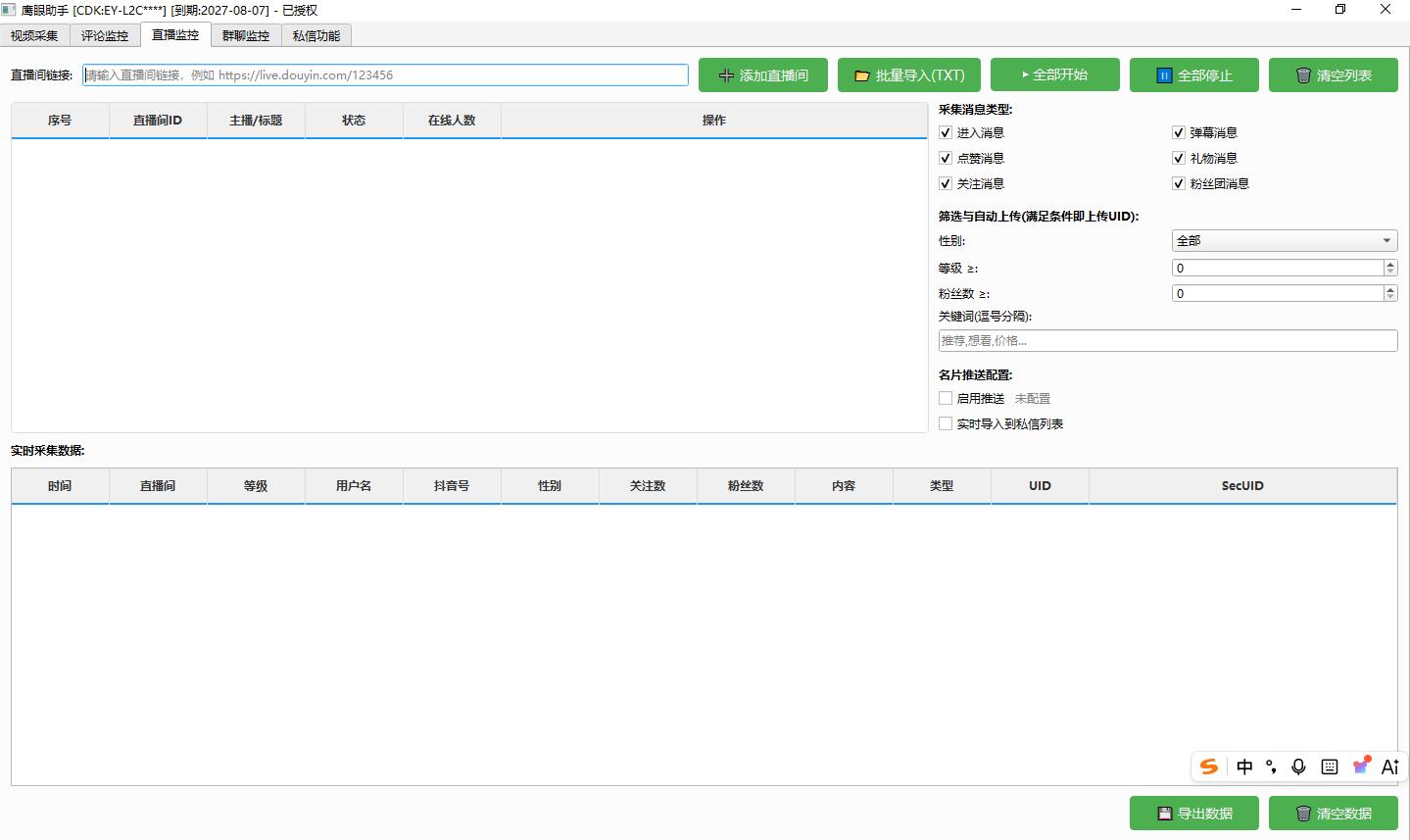三:无账号直播间监控 (监控的uid可以自动导入私信列表)