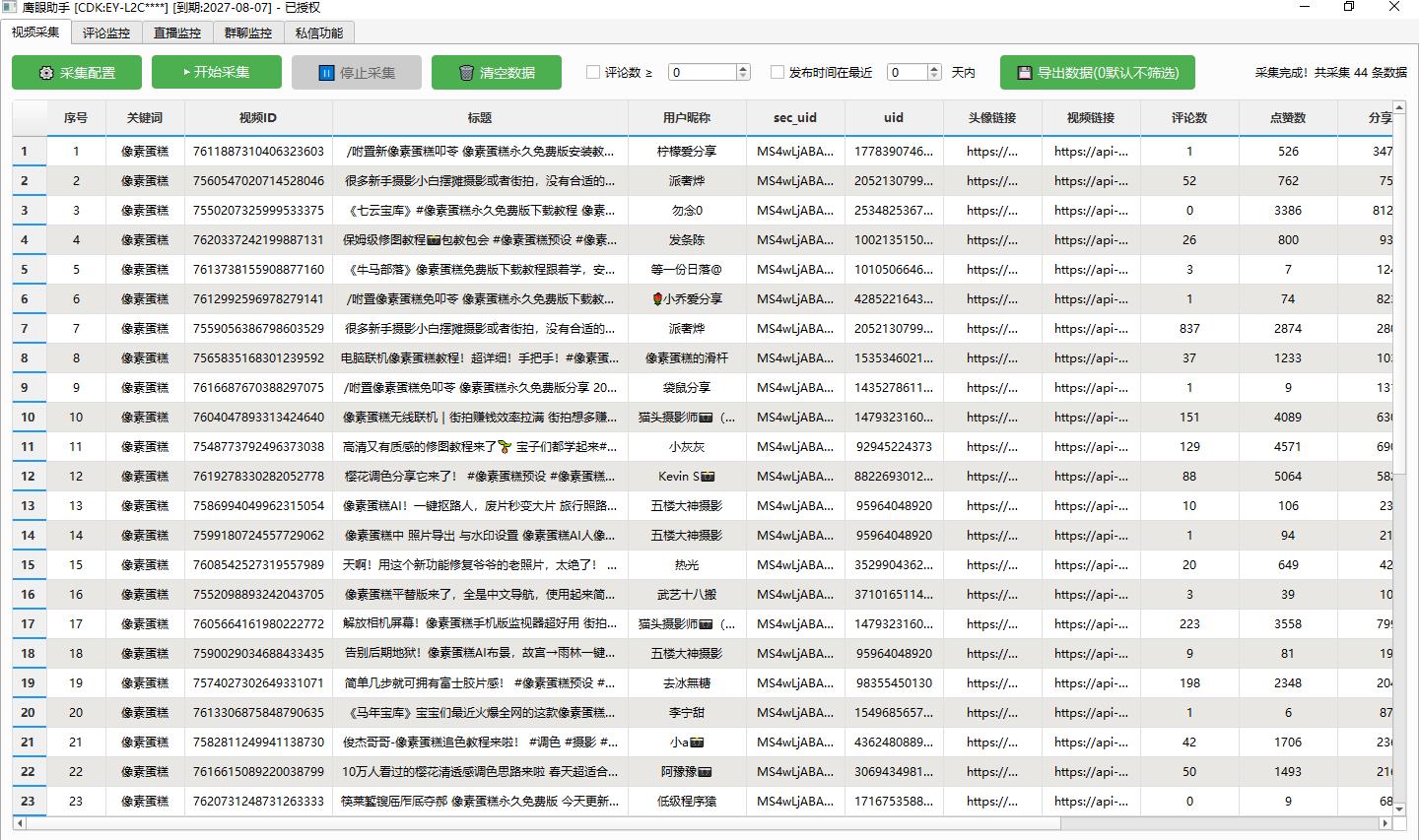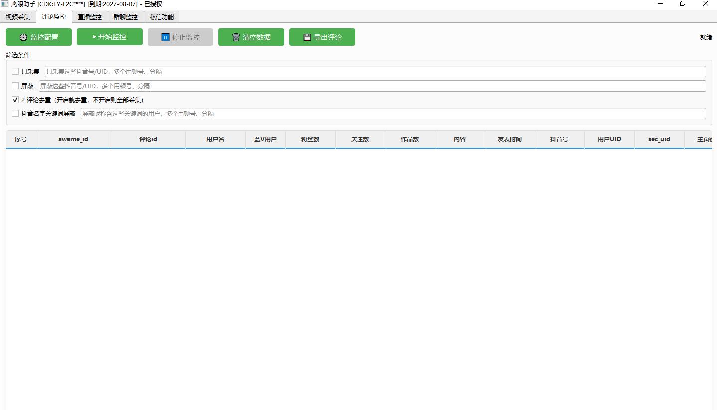 鹰眼获客助手 抖音无线采集监控私信评论工具 正版